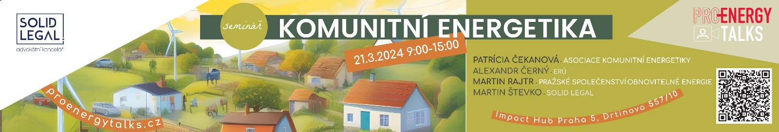 Připojte se k nám na exkluzivní seminář zaměřený na komunitní energetiku, který se koná 21. března 2024 v konferenční místnosti IMPACT HUB, Praha 5, Drtinova 557/10 od 9 do 15 hodin.